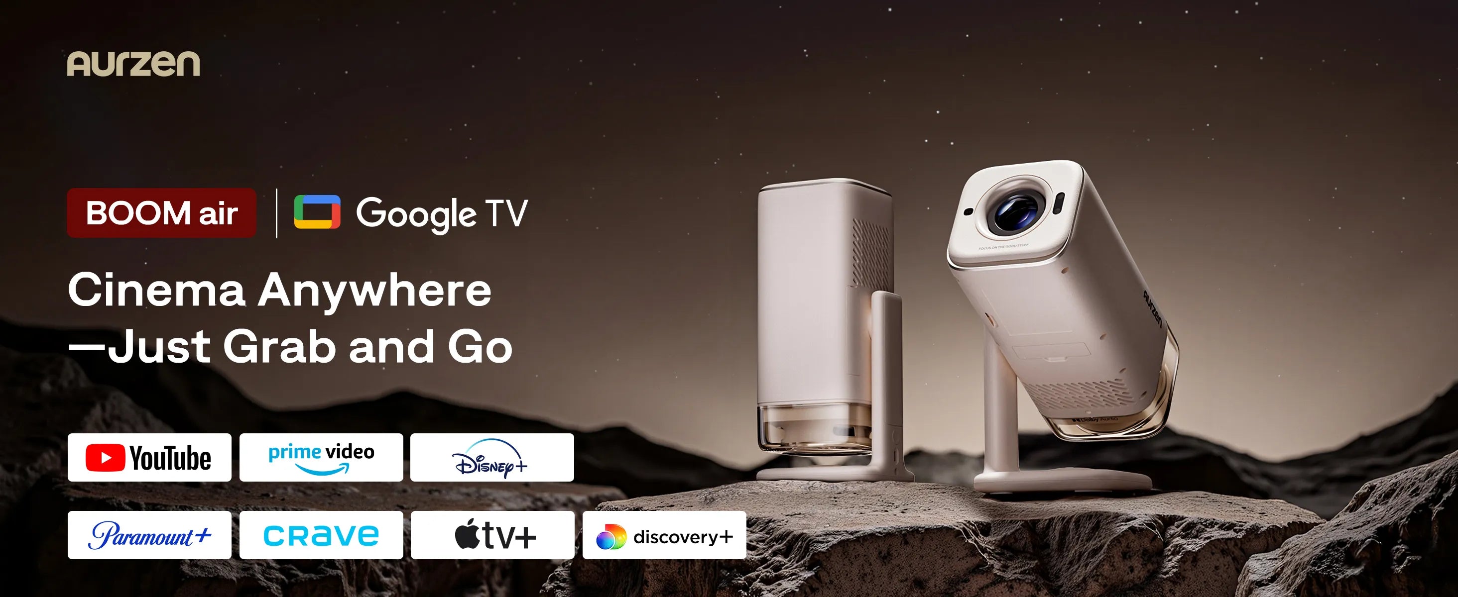 Aurzen BOOM air Google TV Portable Projector with WiFi and Bluetooth