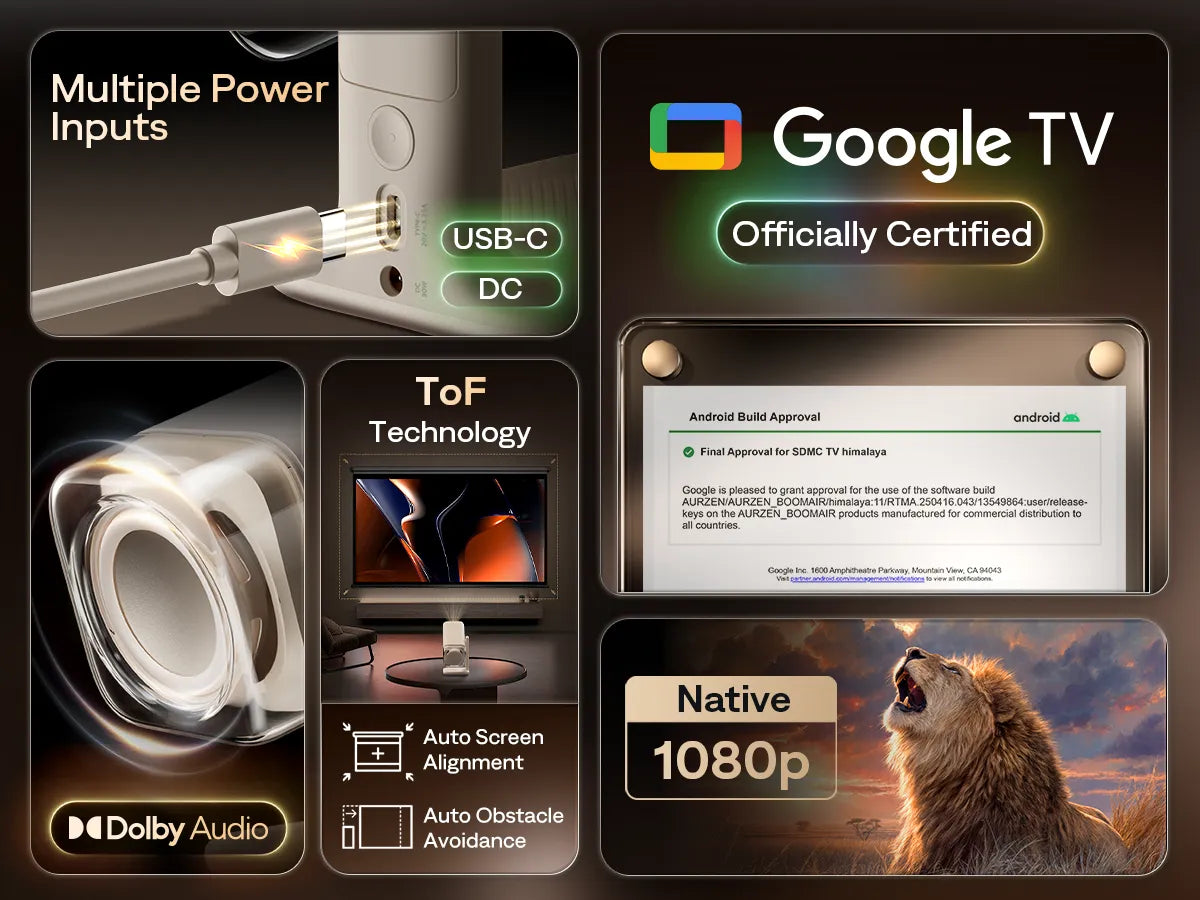 Aurzen BOOM air Google TV Smart Projector | US Version