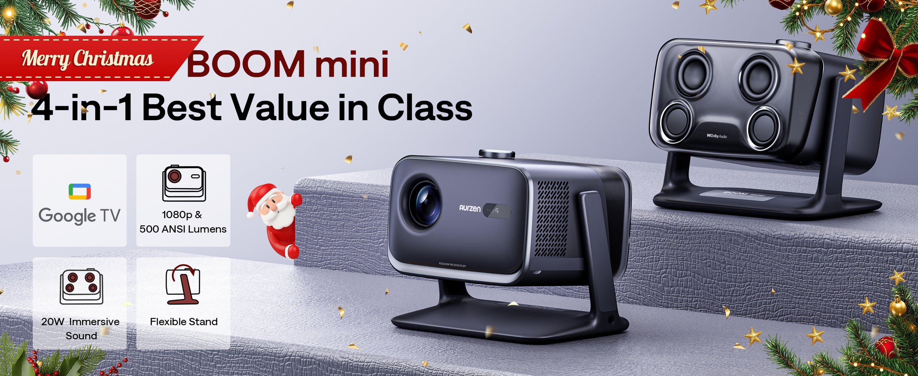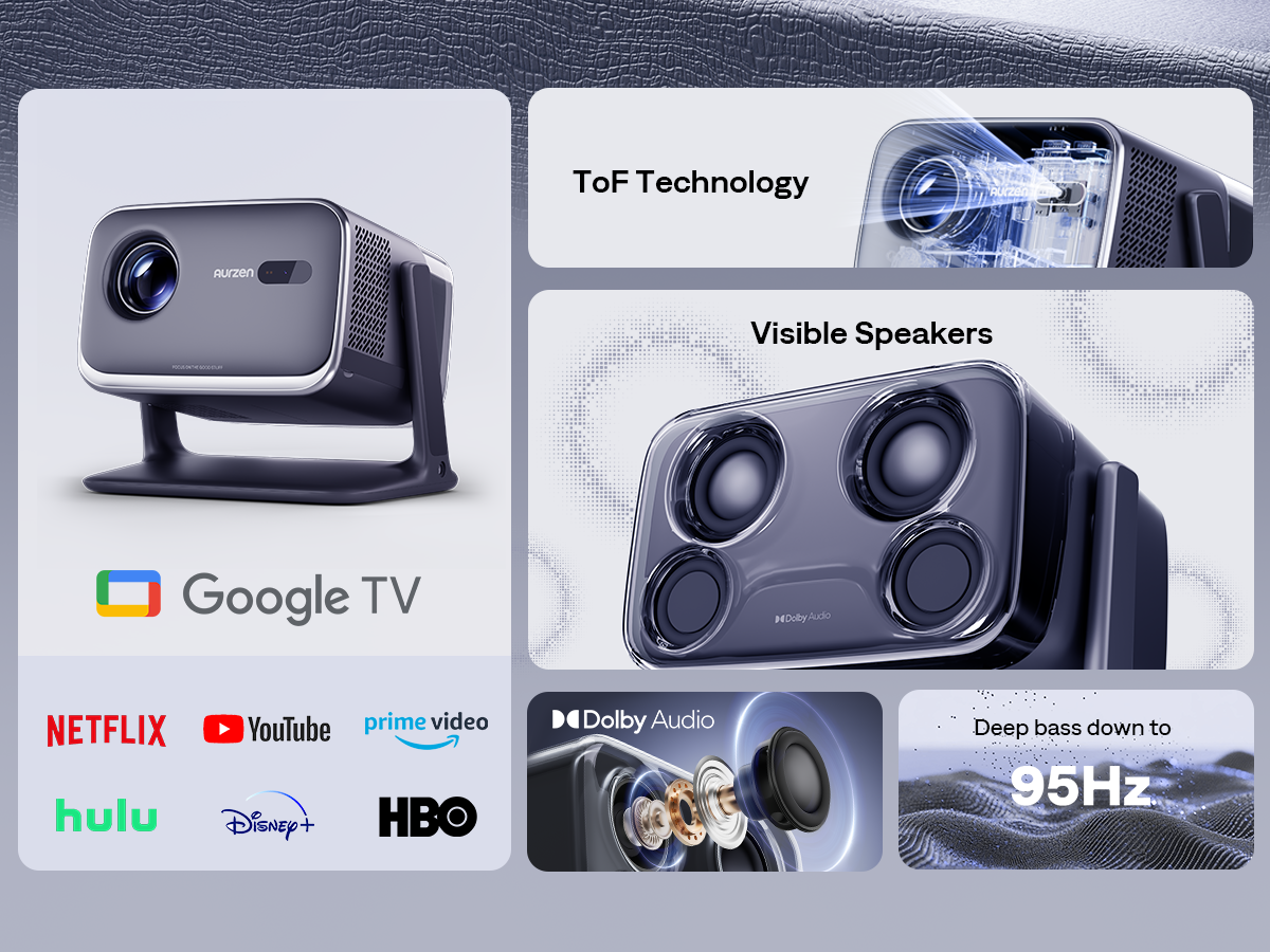 Aurzen Boom mini - Google TV Home Cinema Projector - Massive 200" PS5 Games