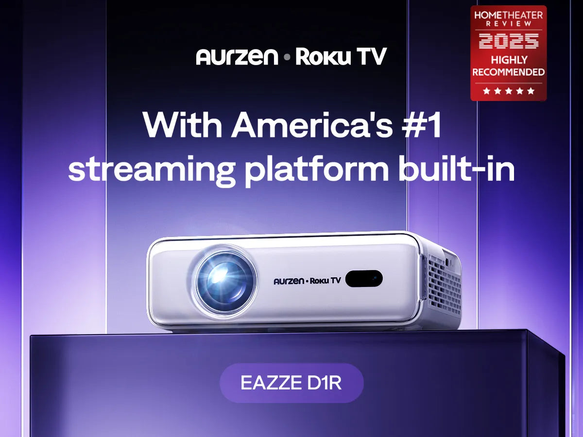 - What's in the Box: Aurzen EAZZE D1R Roku TV Projector*1, Power Cord*1, User Manual*1, Remote Control*1 (Batteries not included)