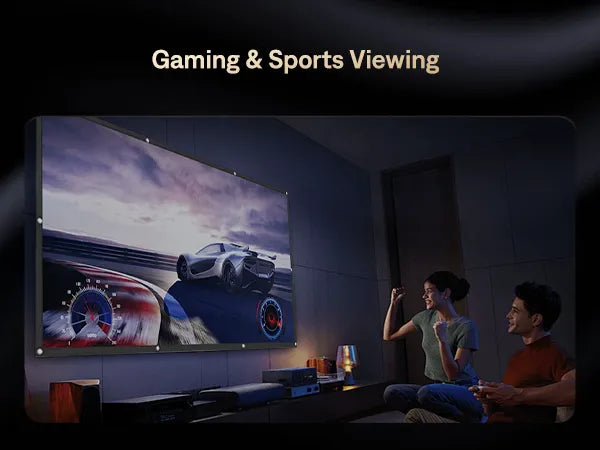 High-reflective screen surface with 1.1 gain and 16:9 aspect ratio improves brightness and clarity, reduces hot spots, and provides an immersive, cinema-like viewing experience for movies, sports and gaming.