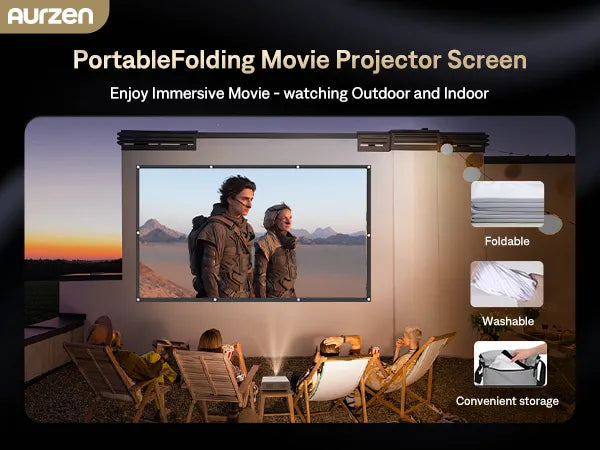 The Aurzen 120" Indoor/Outdoor Foldable Projector Screen is an excellent choice for both indoor and outdoor settings. With its 16:9 format and 160° wide viewing angle, it delivers a cinematic experience in various environments, from home theaters to backyard movie nights.