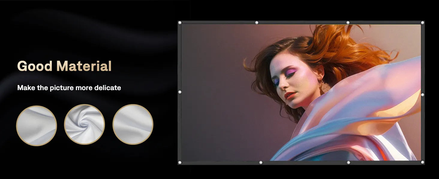 Soft & Washable Fabric: Made of upgraded foldable and washable polyester milk silk, this 120-inch projector screen stays smooth and flat after folding, delivering clear images with vivid colors and no color cast.