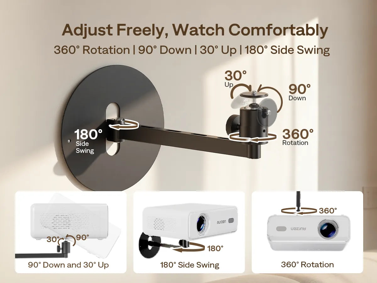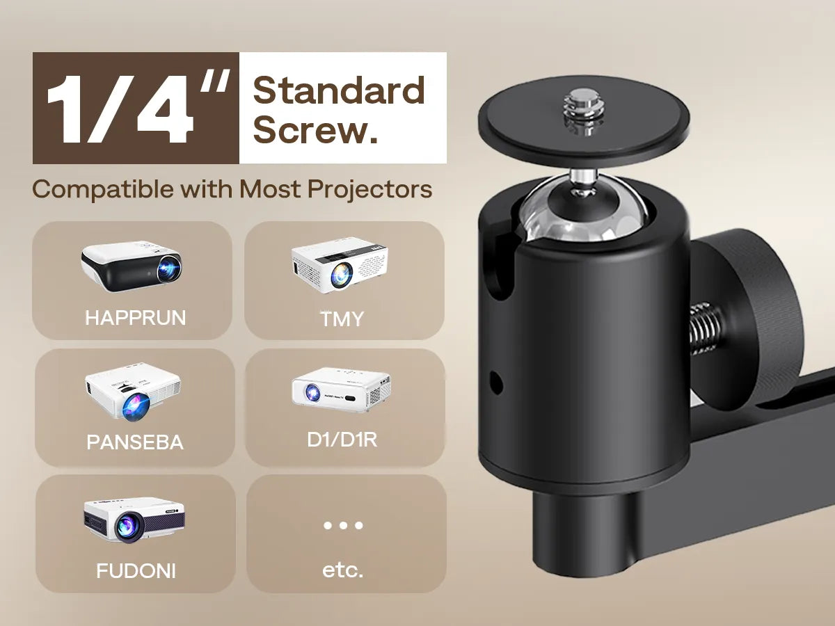 - Universal 1/4″ Thread & Broad Compatibility: Standard 1/4″ mounting thread works with most projectors, DSLRs, ring lights, webcams, LED video lights, microphones, etc. — Compatible with TMY, HAPPRUN, Yaber, Epson & Most Projectors.