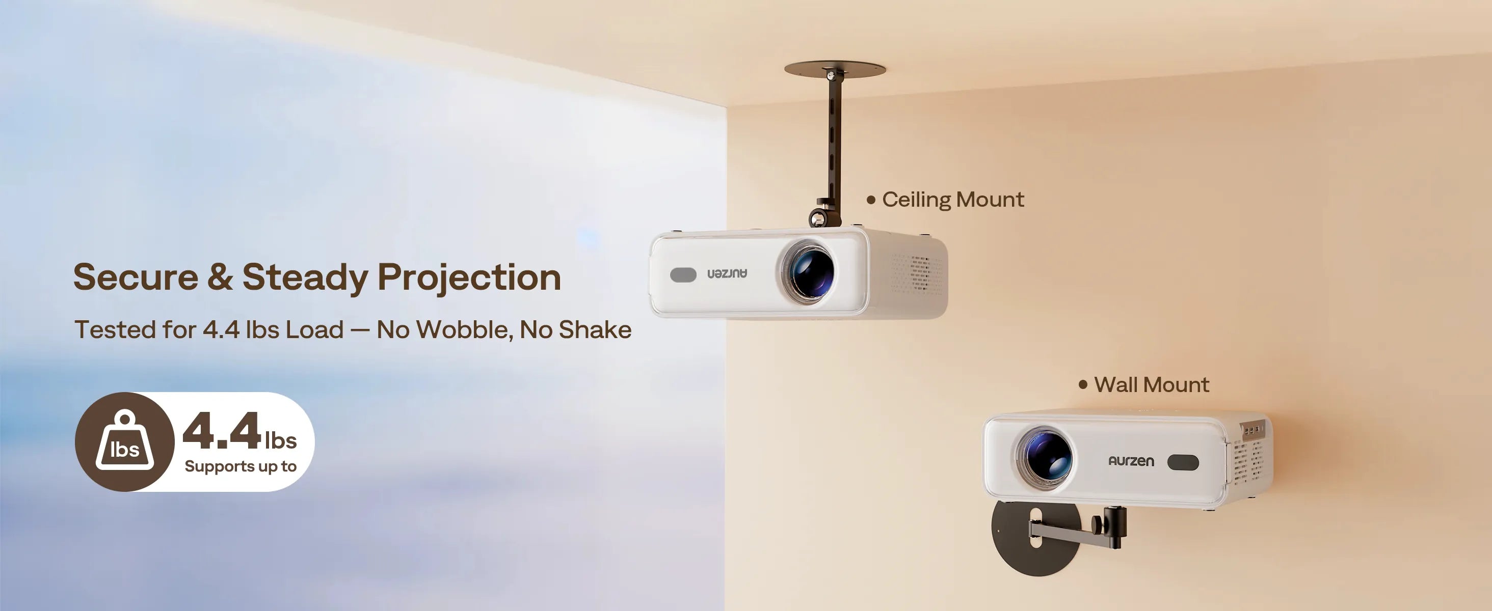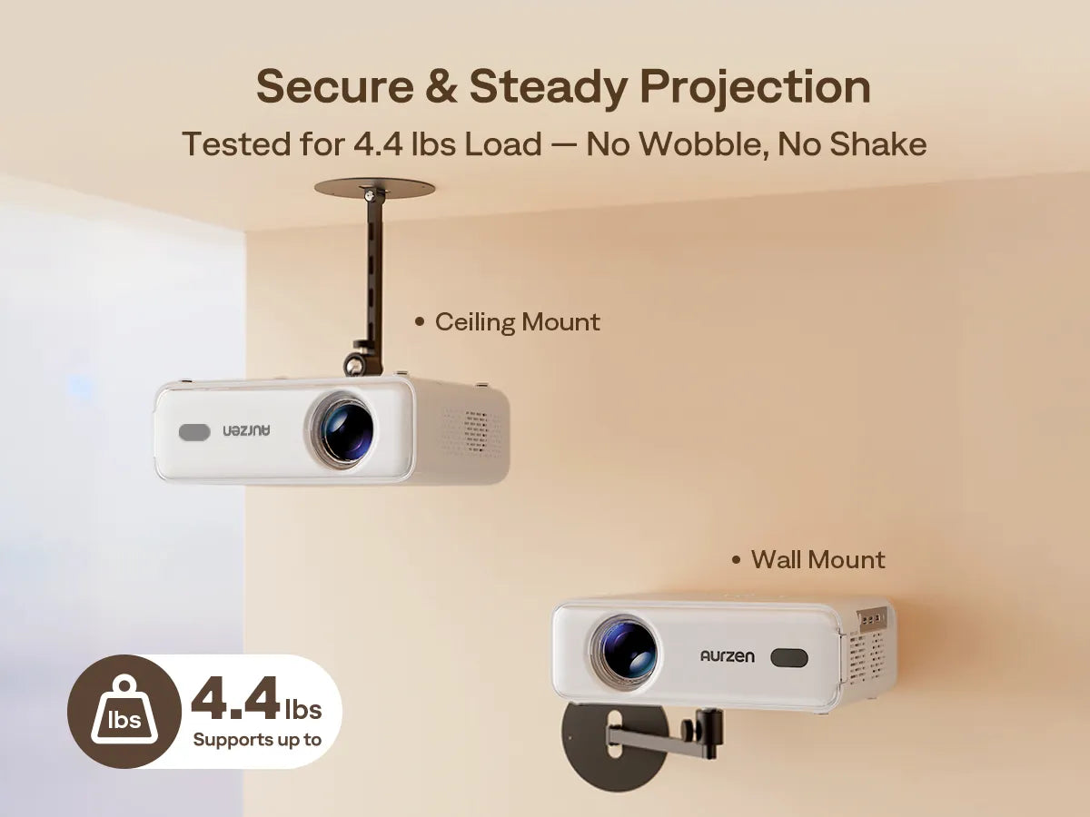 The heavy-duty metal design supports up to 4.4 lbs (2 kg) with zero wobble, ensuring stable projection on flat walls.