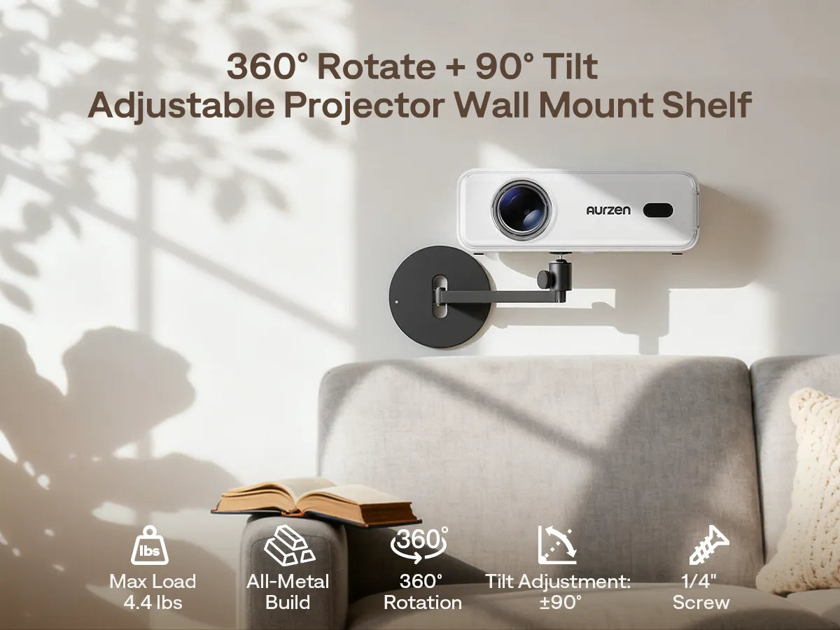 - Rock-Solid Wall-Use Stability: Heavy-duty metal construction supports up to 4.4 lbs (2 kg) with zero wobble or tilt—keeps your projector perfectly steady for flawless images.