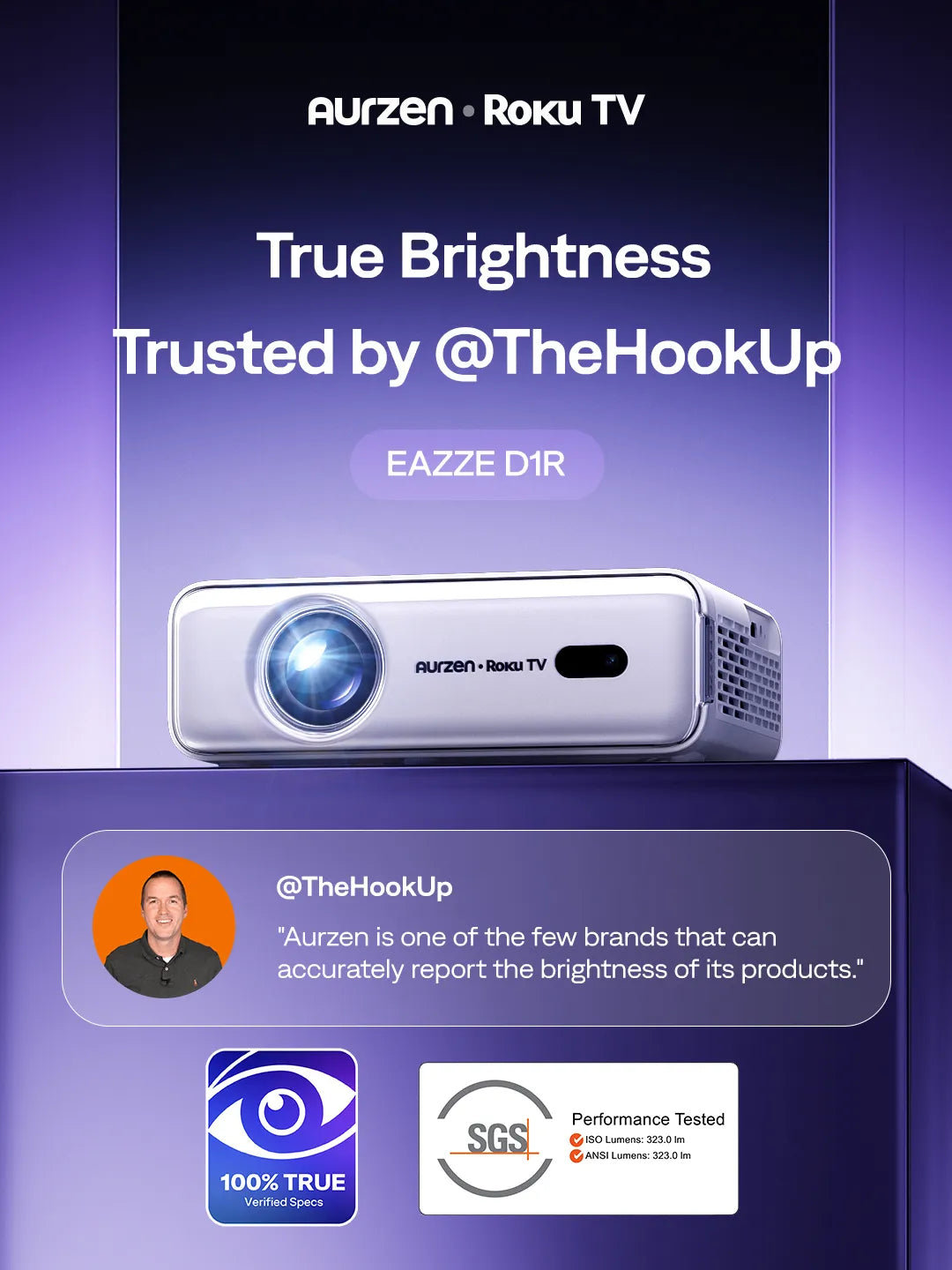 - What's in the Box: Aurzen EAZZE D1R Roku TV Projector*1, Power Cord*1, User Manual*1, Remote Control*1 (Batteries not included)