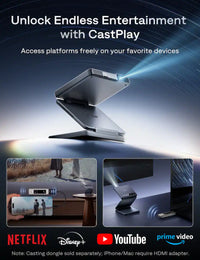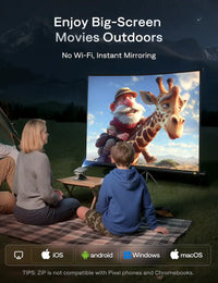 Este proyector DLP ultraportátil plegable en Z, el primero del mundo, presenta un elegante diseño de tres pliegues y una portabilidad compacta del tamaño de una cartera. Combina capacidades de proyección avanzadas con ingeniería de precisión para ofrecer entretenimiento con calidad cinematográfica en cualquier lugar. Su instalación es sencilla gracias a un soporte ajustable integrado que permite múltiples ángulos de visión para el hogar, la oficina o exteriores, eliminando la necesidad de soportes adicionales. Equipado con tecnología de autoenfoque ToF de retardo cero, mide la distancia 30 veces por segundo para ajustar automáticamente el enfoque y la corrección trapezoidal vertical, logrando una claridad impecable. La duplicación de pantalla es simple e instantánea sin necesidad de una red Wi-Fi, y la compatibilidad con Bluetooth garantiza la compatibilidad con dispositivos iOS, macOS, Android y Windows (nota: Google Cast no es compatible, por lo que los teléfonos Pixel, Motorola y Chromebooks no son compatibles). Compacto, elegante y funcional, este proyector también es un regalo memorable para cumpleaños, fiestas, graduaciones o aniversarios, perfecto para entusiastas de la tecnología, viajeros o cualquier persona que disfrute del entretenimiento en cualquier lugar.