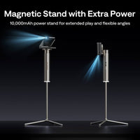 Este proyector incluye un soporte integrado que permite colocarlo en múltiples ángulos para usarlo en casa, en la oficina o al aire libre. Simplemente despliégalo, ajústalo y empieza a proyectar; no se necesitan soportes ni bases adicionales.