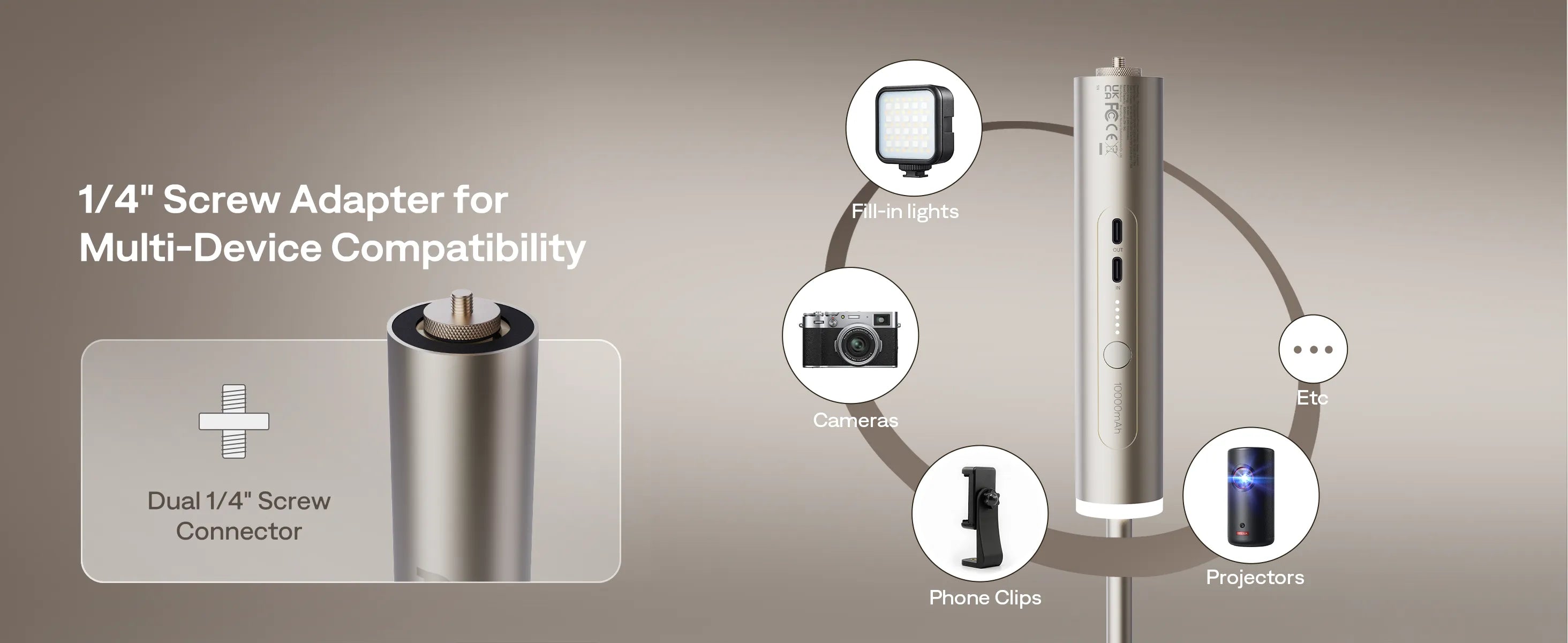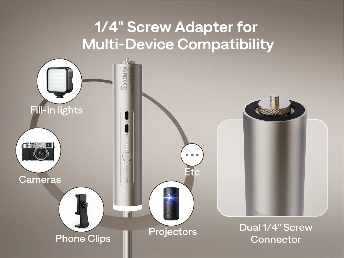 - Universal 1/4" Adaptador de parafuso incluído: Compatível com uma ampla variedade de dispositivos, incluindo projetores, câmeras, smartphones, luzes de preenchimento e clipes de telefone.