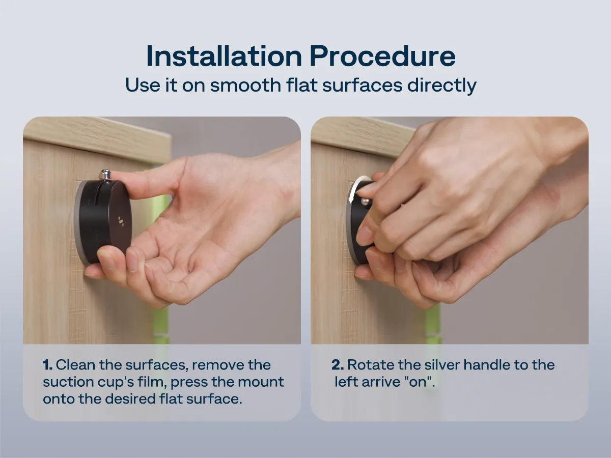 O suporte utiliza uma inovadora tecnologia de sucção a vácuo. O Suporte de Sucção Magnética pode ser aspirado em qualquer lugar, liberando suas mãos. A nova tecnologia de sucção a vácuo da pá possui um botão mecânico integrado. Basta deslizá-lo e o Suporte Ajustável de Adsorção Magnética será aspirado em segundos.