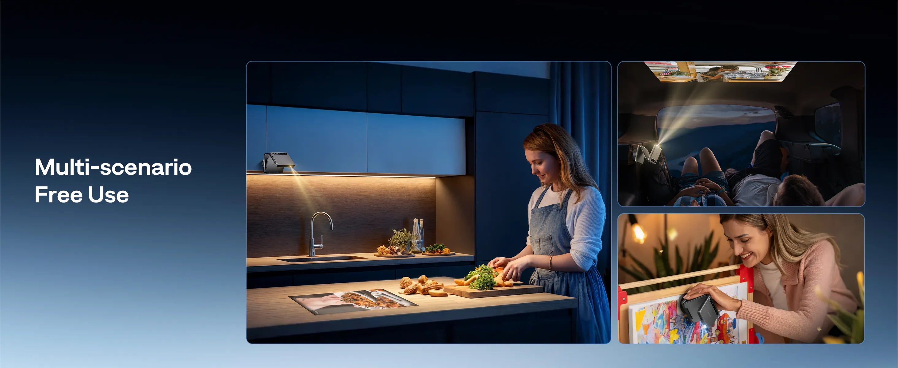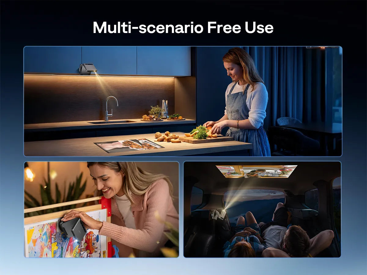 Aproveite a rotação de 360° para posicionamento versátil, incluindo projeção no teto — perfeito para uso com projetor ZIP.